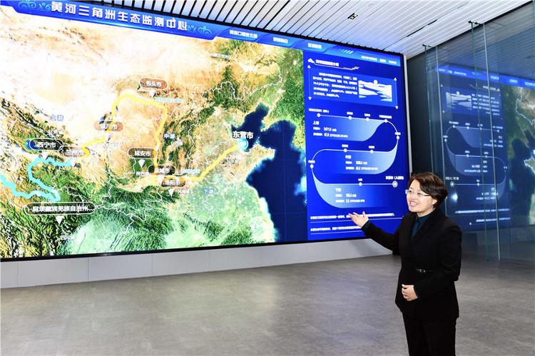山东黄河三角洲国家级自然保护区生态监测中心主任刘静在介绍相关情况(2021年10月20日摄)。新华社记者郭绪雷摄