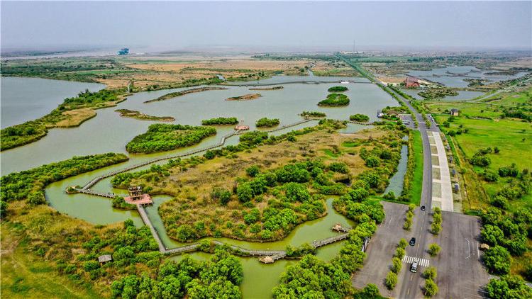 夏日的东营市黄河入海口湿地,绿草连天、百鸟翔集。