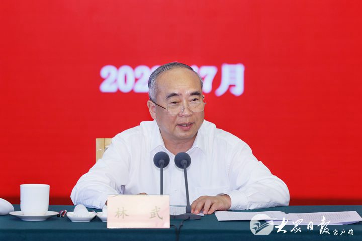 林武在讲话中指出,党的十八大以来,习近平总书记就文化建设提出一系列新思想新观点新论断,为我们做好宣传思想文化工作提供了根本遵循。近期,习近平总书记在文化传承发展座谈会、中共中央政治局第六次集体学习时发表重要讲话,对我们坚定文化自信自强,开创文化强省建设新局面具有重大意义。我们要深入学习领会、全面准确把握,切实把思想和行动统一到总书记重要讲话精神上来,以实际行动坚定拥护“两个确立”、坚决做到“两个维护”。