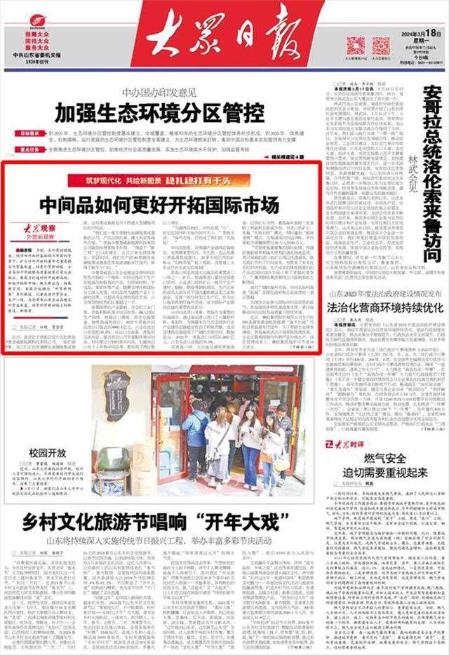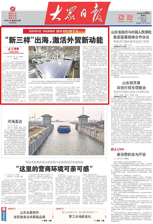 当前,在外需持续低迷、经济回升向好基础尚不牢固的背景下,扩大对外开放的重中之重是稳定外贸基本盘、培育外贸新动能。全省高水平开放暨高质量招商引资大会提出,要聚力打造对外开放新高地,积极开拓新市场、做大新业态、拓展新空间。近日,大众日报推出“外贸新观察”系列报道,记者走进外贸企业、生产一线,为你带来山东企业在稳定外贸基本盘、培育外贸新动能上的新尝试、新探索。