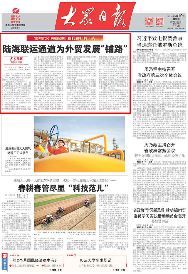 今年,山东高速集团将充分发挥山东中欧班列优势,高标准建设济南、青岛陆海联动枢纽,着力推动区域协同,强化济青班列联动合作,着力推动多种运输方式协同,创新发展TIR运输、公铁联运、海铁联运等多式联运,加快建设济南集结中心二期、上合经贸产业园等枢纽支撑项目,加密境外节点网络布局,做大做强国际物流大通道,助推打造全省对外贸易合作新平台。
