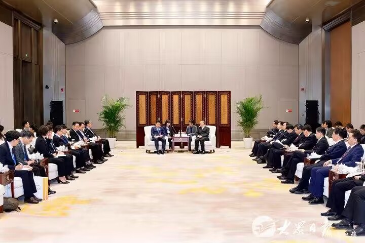 3月26日上午,省委书记林武在青岛会见了前来出席2023山东省旅游发展大会的韩国济州特别自治道知事吴怜勋一行。省委副书记、青岛市委书记陆治原参加。