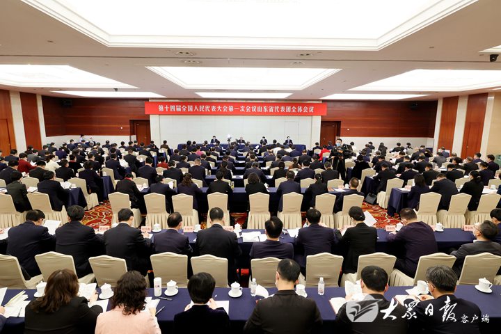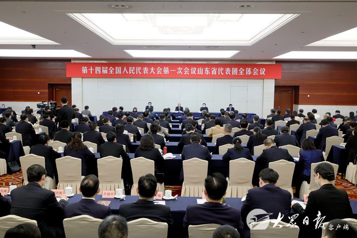 3月12日晚,出席十四届全国人大一次会议的山东代表团举行全体会议,总结代表团履职情况,安排有关事项。