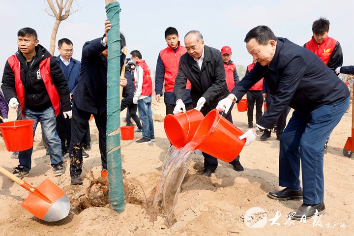 3月18日上午,军地领导同志来到济南新旧动能转换起步区黄河生态廊道防护林二期工程项目区,带头参加义务植树活动。
