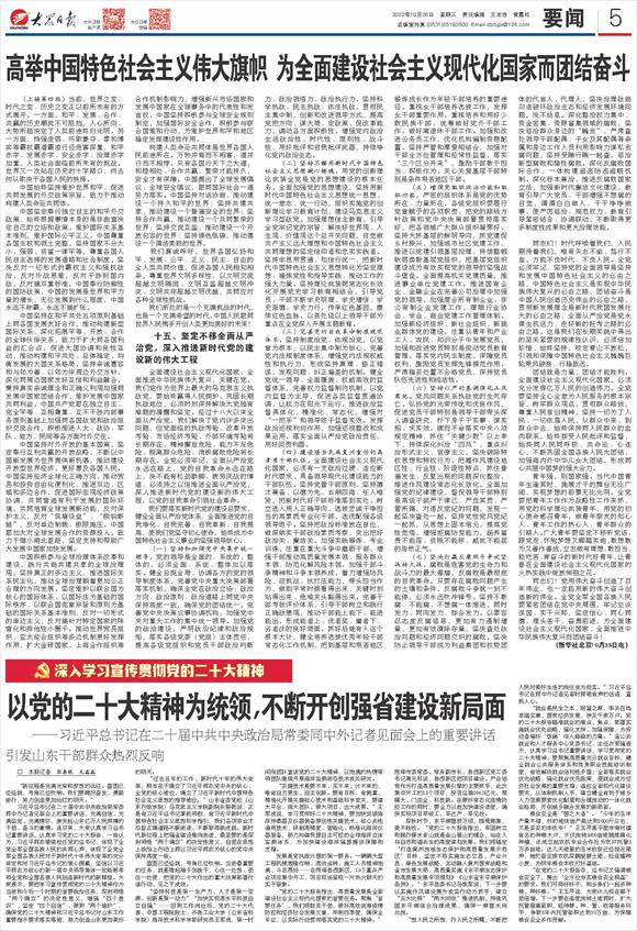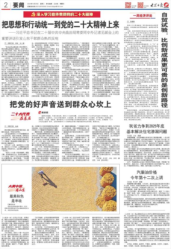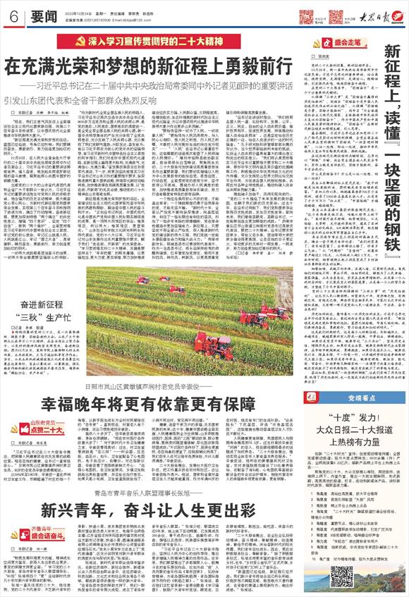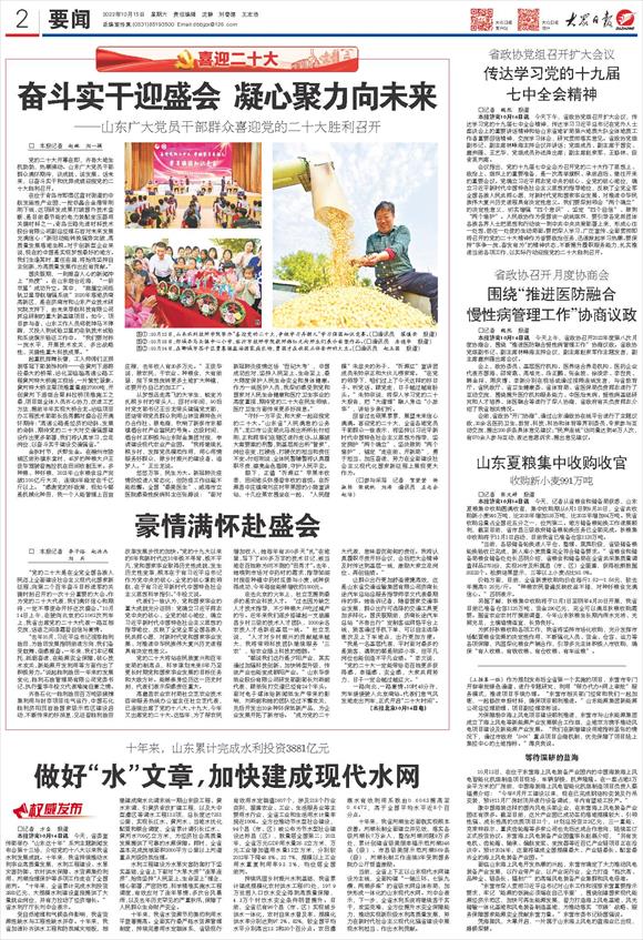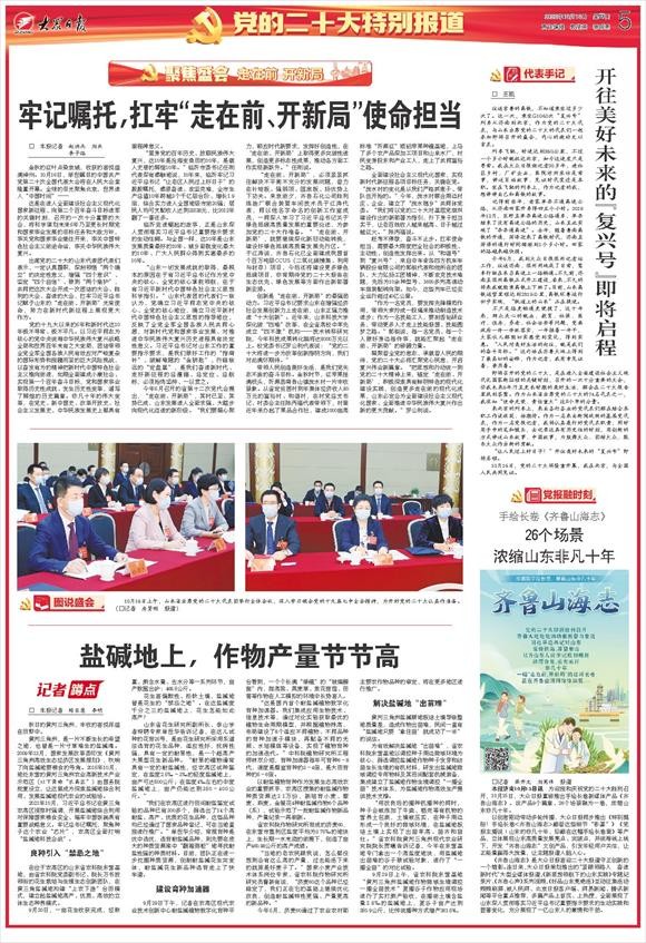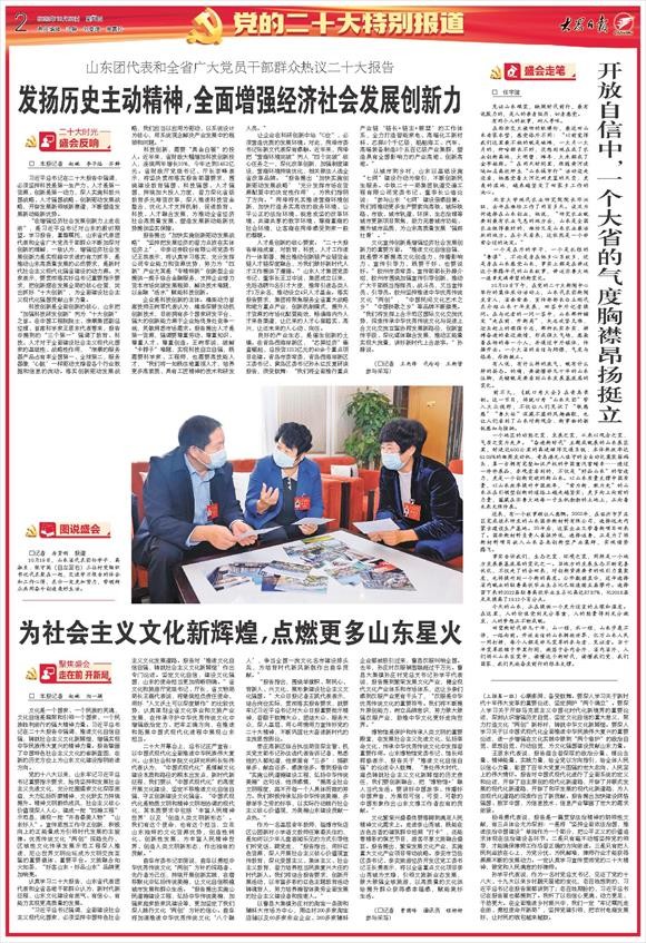 党的二十大开幕在即,齐鲁大地生机勃勃,热潮涌动。山东广大党员干部群众满怀期待,谈成就、说发展、话未来,以奋斗实干和优异成绩迎接党的二十大胜利召开。
