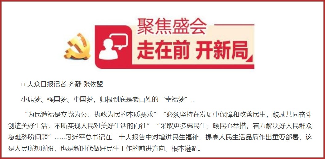 习近平总书记在二十大报告中对增进民生福祉、提高人民生活品质作出重要部署,这是人民所想所盼,也是新时代做好民生工作的前进方向、根本遵循。