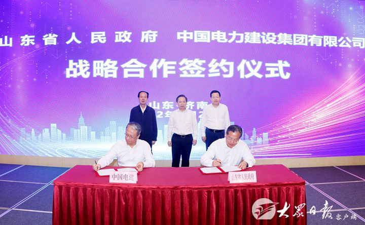 9月26日上午,山东省人民政府与中国电力建设集团有限公司在山东大厦签署战略合作协议。省委书记李干杰,省委副书记、省长周乃翔,中国电力建设集团有限公司董事长丁焰章出席签约仪式。