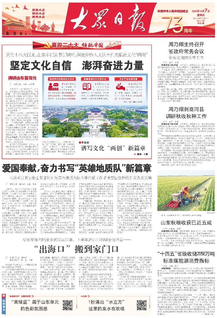 金秋时节庆丰收,满怀期望迎盛会。党的二十大即将胜利召开,齐鲁大地处处涌动着奋进新征程、建功新时代的豪情和干劲。