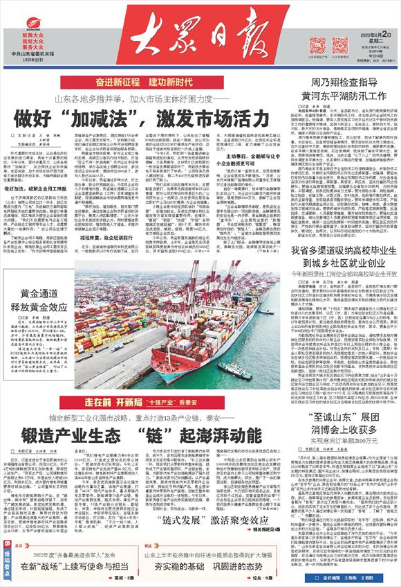 2022-08-11山东把准切入点,找准突破口,在加快数字赋能、优化营商环境、促进集约发展等方面推出一系列创新举措,既夯实高质量发展支撑,又高效激发发展新动能。