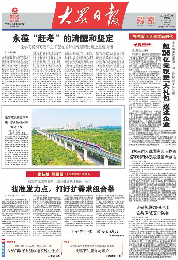 2022-08-09山东以“十大创新”为牵引,把加强科技研发创新放到全面创新的核心位置,强化科技攻关项目、平台、人才、资金一体化配置,加快推动科技自立自强,做强高质量发展的最大增量。