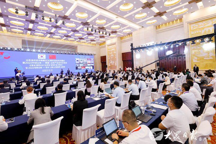8月17日上午,山东省庆祝中韩建交30周年活动月开幕式暨2022对话山东—韩国·山东产业合作交流会在山东大厦金色大厅举行。