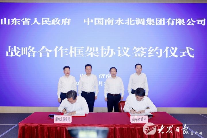 6月28日上午,山东省人民政府与中国南水北调集团有限公司在山东大厦举行座谈会并签署战略合作框架协议。