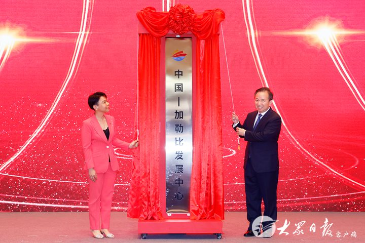 7月6日上午,中国—加勒比发展中心揭牌仪式暨中国—加勒比发展交流会在山东大厦举行。省委书记李干杰出席活动并致辞,并与圭亚那驻华大使周雅欣共同为中心揭牌。